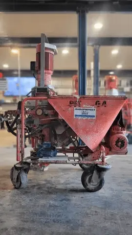 Potente máquina trifásica PFT G4 para proyectar yeso y mortero. Equipo de segunda mano, revisado y en perfecto estado. Ideal para trabajos profesionales de construcción y acabados.